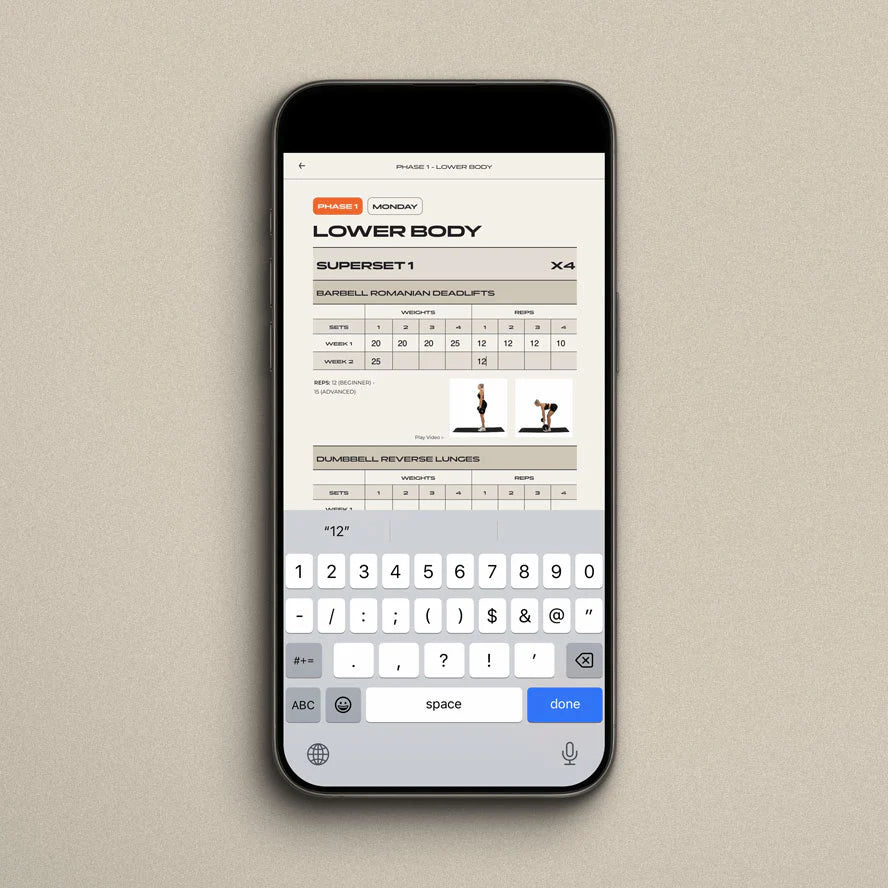 Each workout has an interactive section where you can track the weights you use and see your improvements week on week.